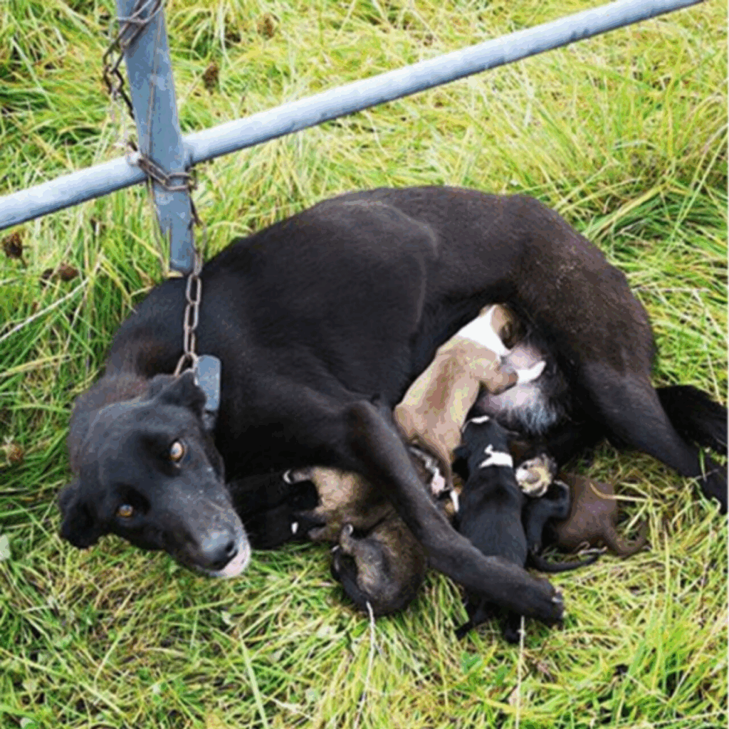 The image of a young lurcher chained to a fence post, refusing to give up on her puppies, is not one easily forgotten. But neither is the relief of knowing that she and her six little ones are now safe, warm, and on the path to brighter days.