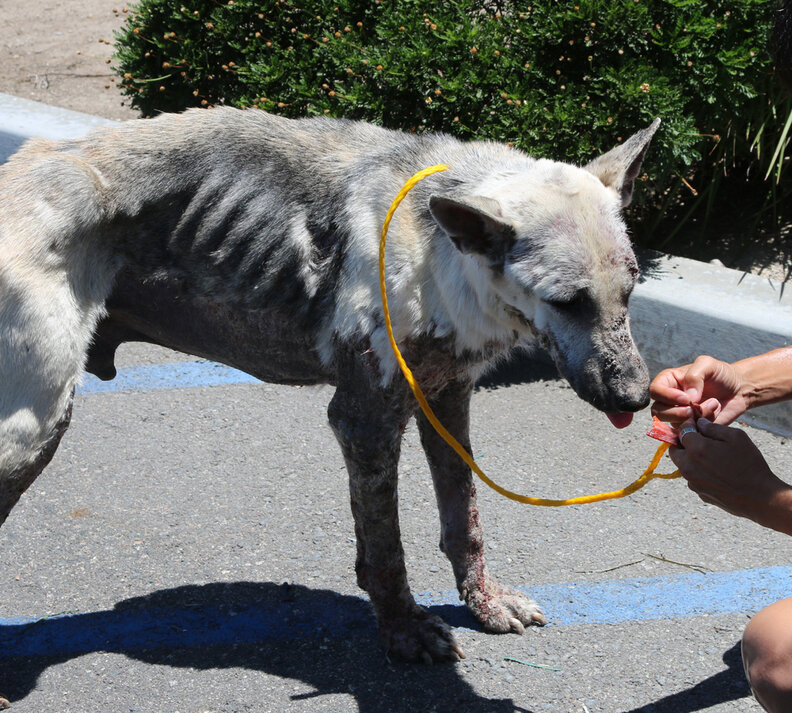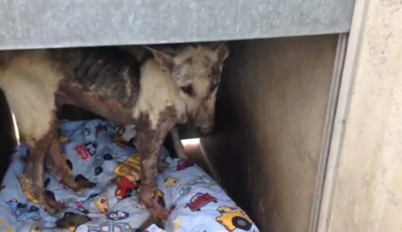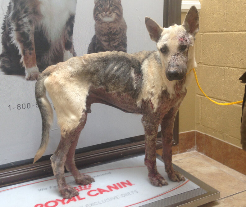 Weighing only 53 pounds, he was diagnosed with sever mange, bacterial infections, anemia, as well as a host of other issues.
