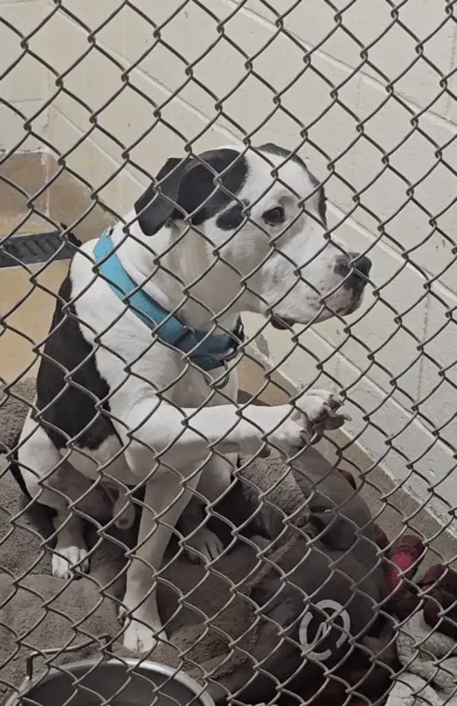This isn’t Deuce’s first time behind kennel doors. He first arrived at the shelter in September, after being abandoned by his owner. In November, his luck seemed to turn when he was adopted into a home. But just a month later, he was back.
