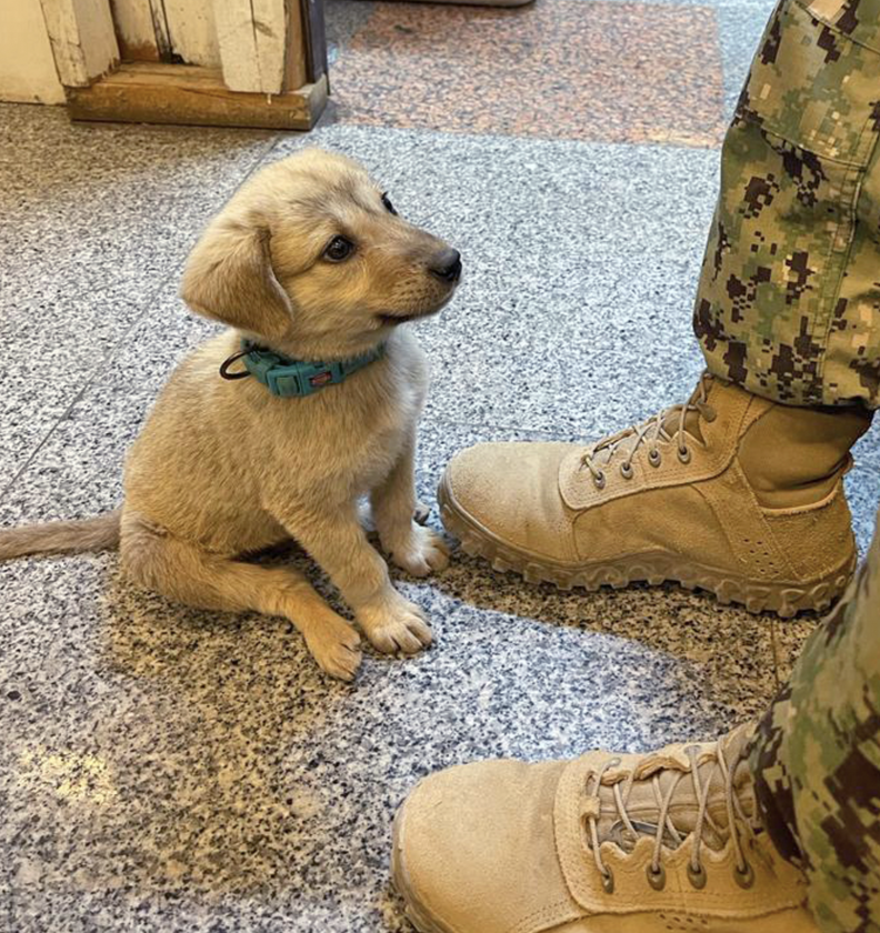 “A U.S. Naval Commander saw the little dog and immediately recognized he wouldn’t survive long alone in such a dangerous environment; scooping the pup up into his arms as he was reminded of his unit’s motto, ‘Those who arrive alive, leave alive’ and he knew it had to apply to this little soul too,” Paws of War, a nonprofit that provides service dogs to veterans and first responders, wrote on Facebook.