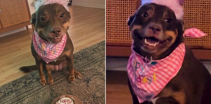 It was Kona’s seventh birthday, and unlike other dogs who might hope for new toys or treats, Kona wished for something special — love. Her family baked her a small birthday cake and gathered around to sing just for her. As the song began, Kona’s tail wagged softly, and a big, happy smile spread across her face. She didn’t need anything fancy — just to feel seen, appreciated, and loved.